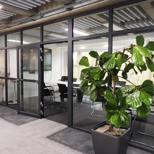- Glastrennwände zur Abtrennung von 3 Meetingräumen mit Konferenzsystemen