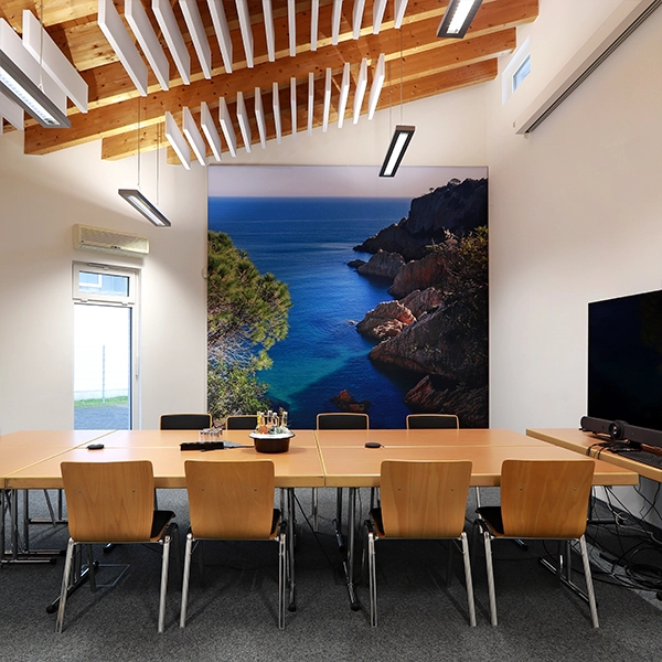 Umbaumaßnamen akustisches Wandbild in den Maßen 4 m x 4 m, Motiv individuell ausgesucht 90 Deckenbaffel
