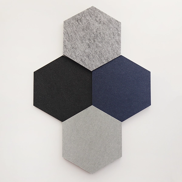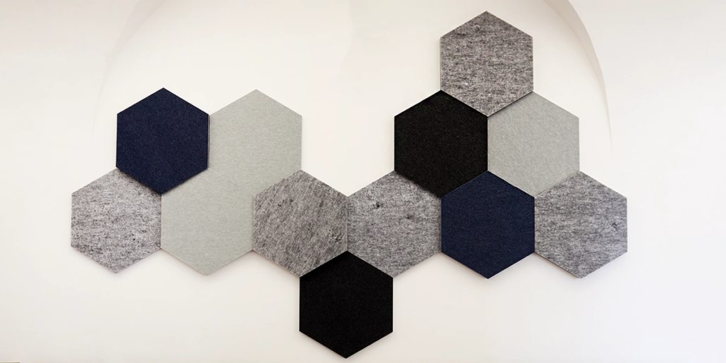 • 70 sechseckige Wandelemente aus akustisch wirksamen Material